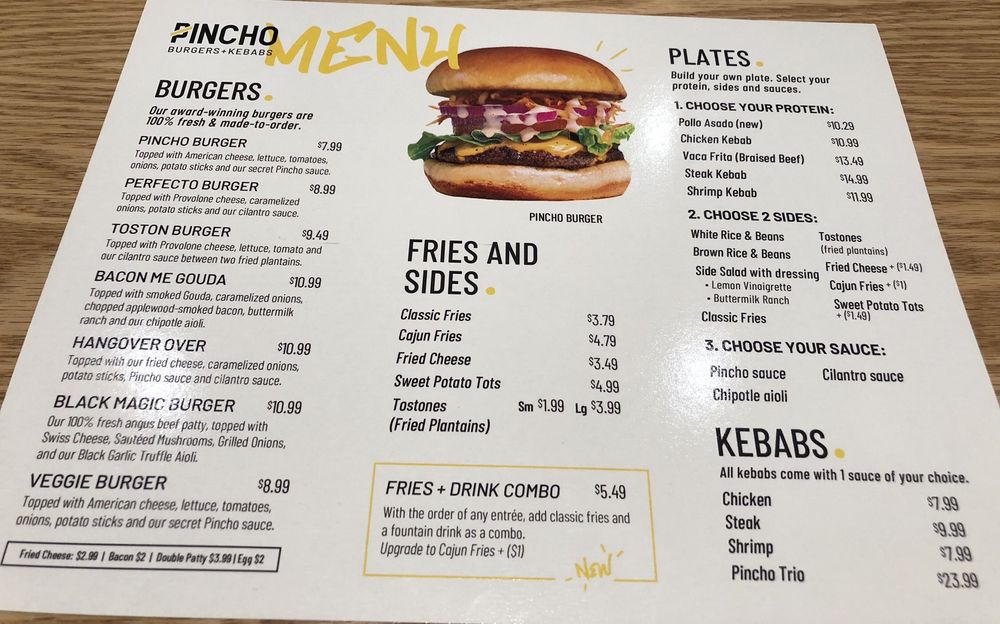 Welcome to PINCHO Burgers and Kebabs, where Latin American flavors collide with modern culinary creativity. Located in Cypress, TX, this casual yet trendy eatery offers an expansive menu that celebrates the vibrant tastes of the region.